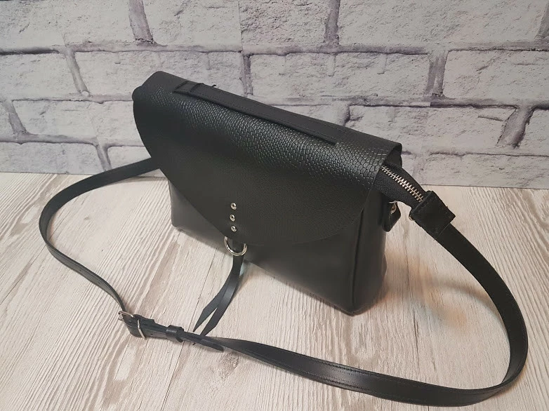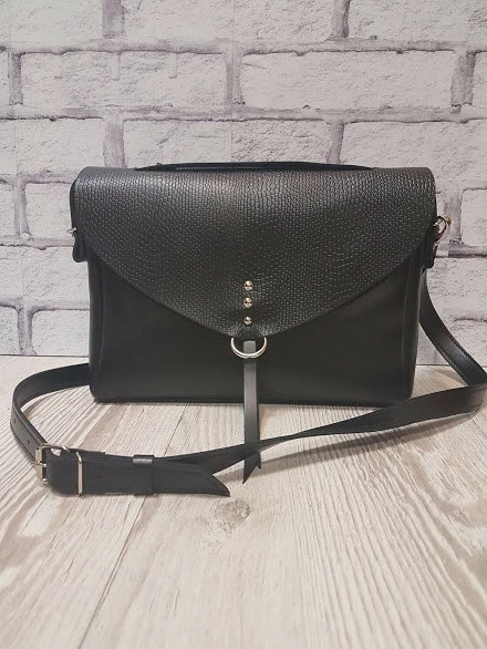 Сумка женская "Дороти" натуральная кожа, черная матовая с клапаном под рептилию