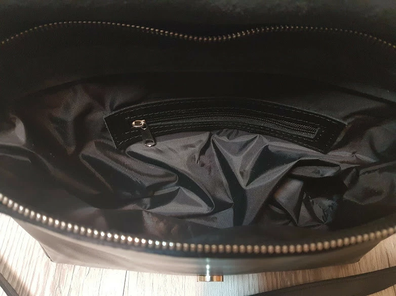 Внутри сумки имеется карман на молнии. Плечевой ремень двойной,