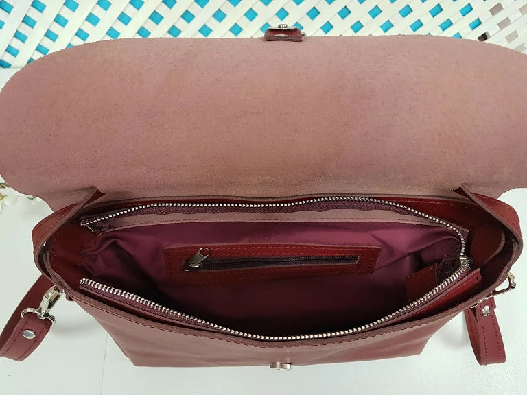 Внутри сумки имеется карман на молнии. Плечевой ремень двойной,