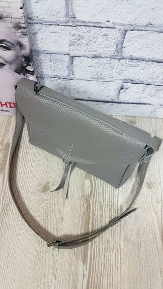 Сумка женская "Дороти" натуральная кожа, серая матовая с тиснением под плетенку