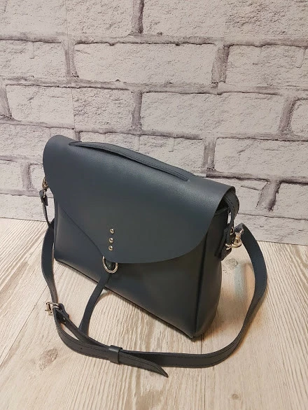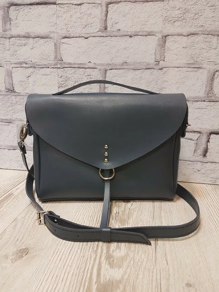 Сумка женская "Дороти" натуральная кожа, серо-синяя матовая