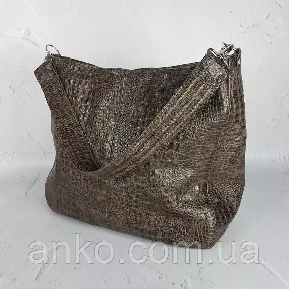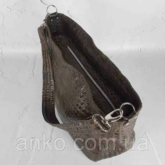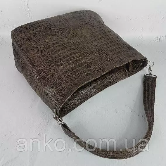 Сумка женская "Ева" натуральная кожа, коричневая с тиснением под крокодила