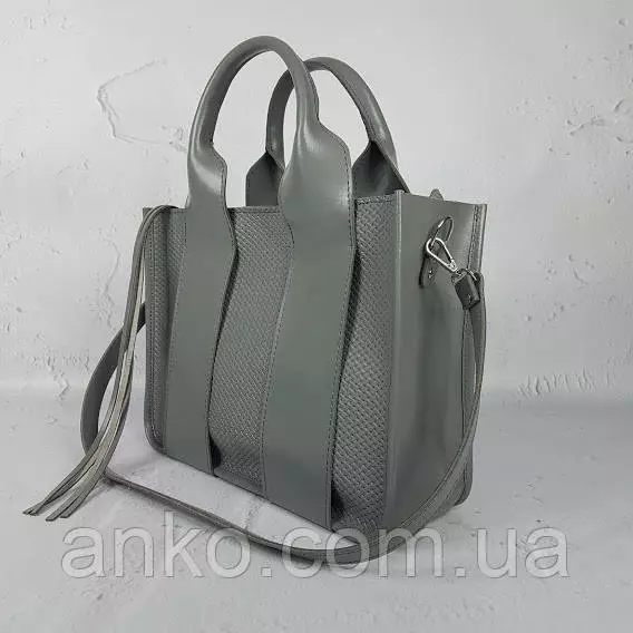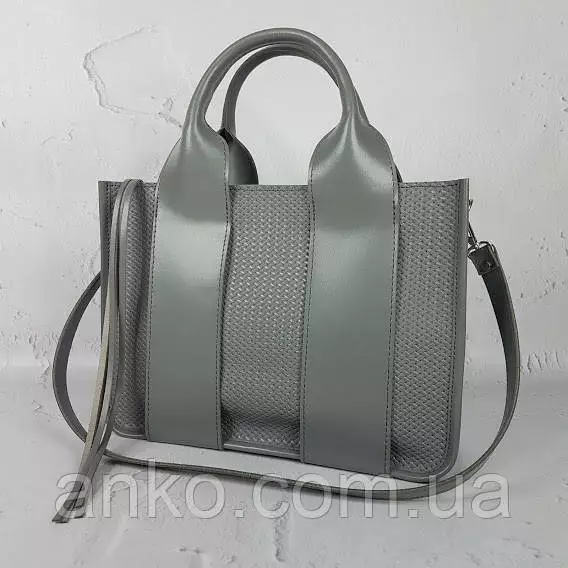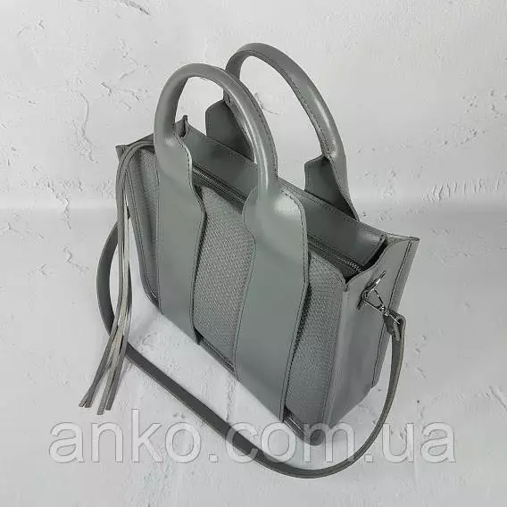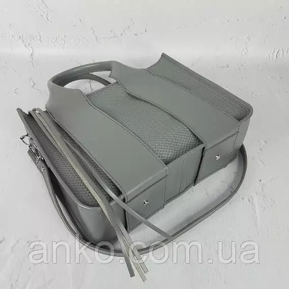 Сумка женская "Фиона плюс" натуральная кожа, серая с плетенкой