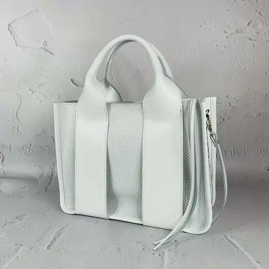 Сумка женская "Фиона плюс" натуральная кожа, белая с тиснением под плетенку