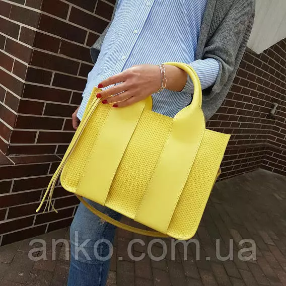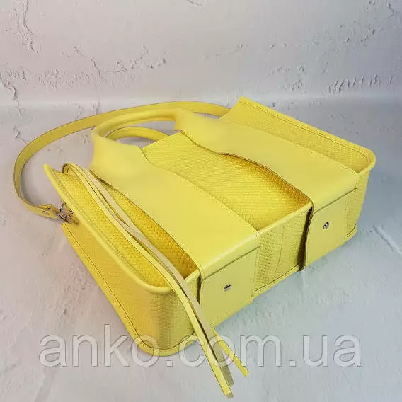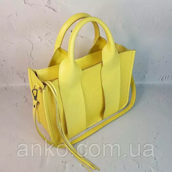 Сумка женская "Фиона плюс" натуральная кожа, желтая с плетенкой