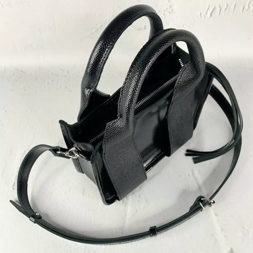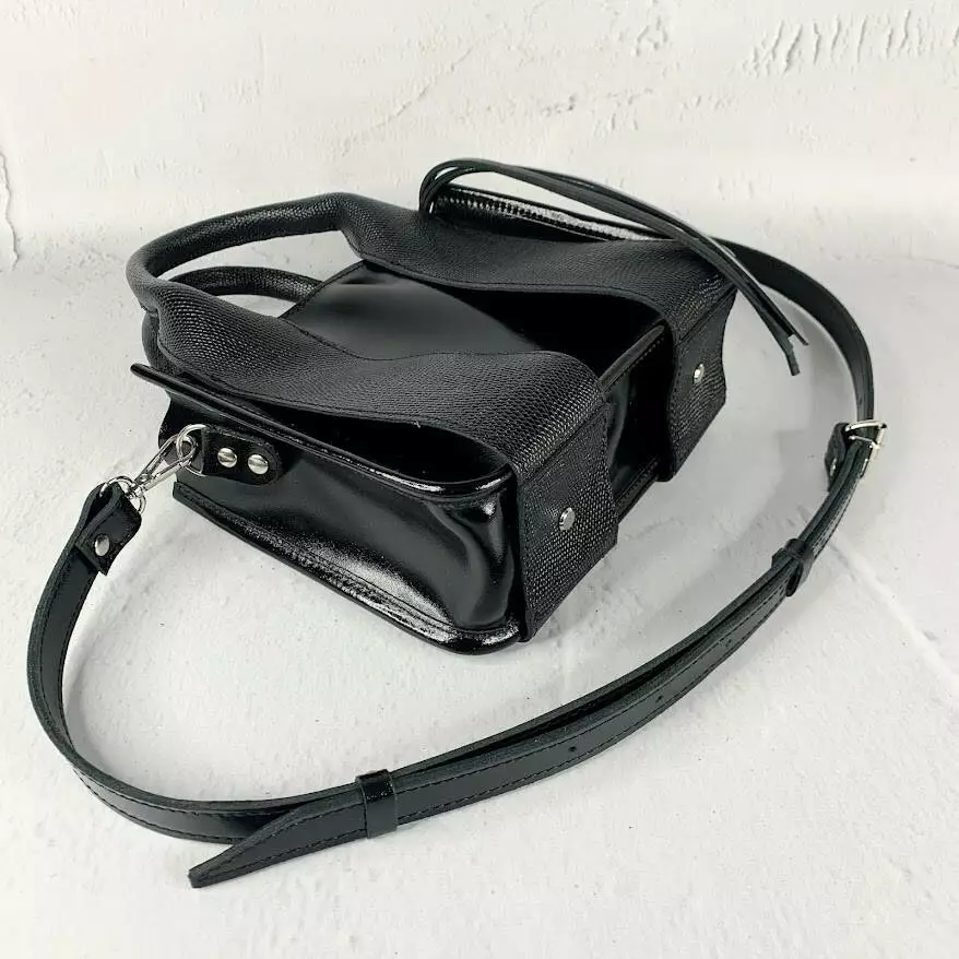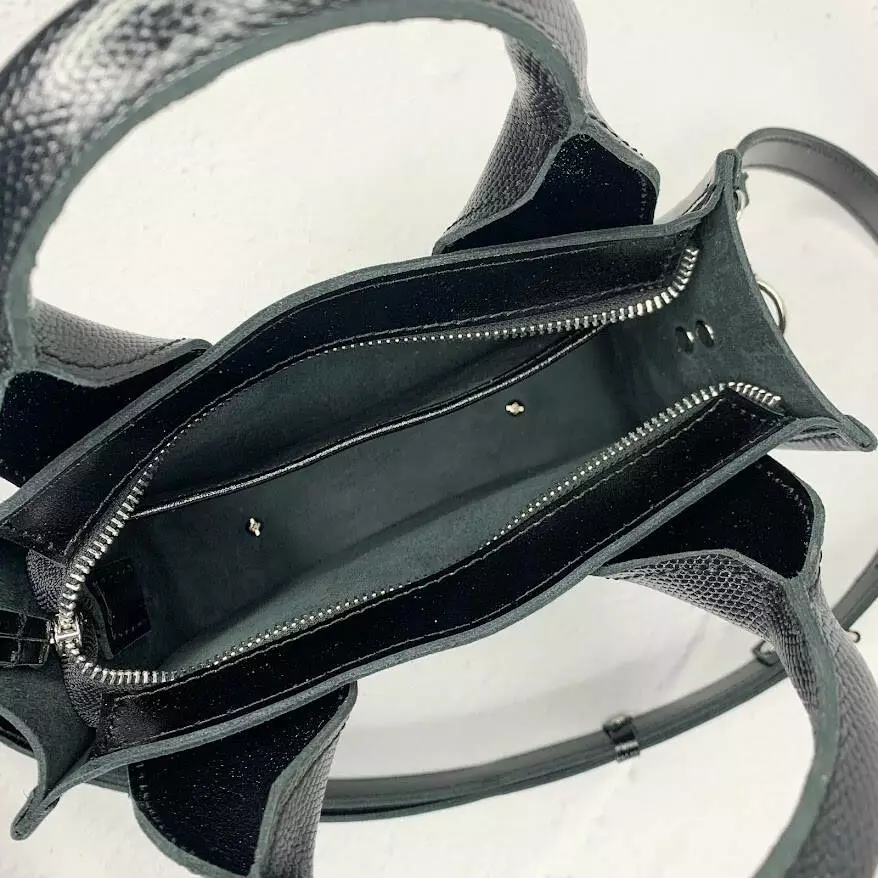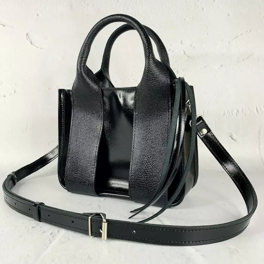 Сумка женская "Фиона S" натуральная кожа, черная глянцевая с рептилией