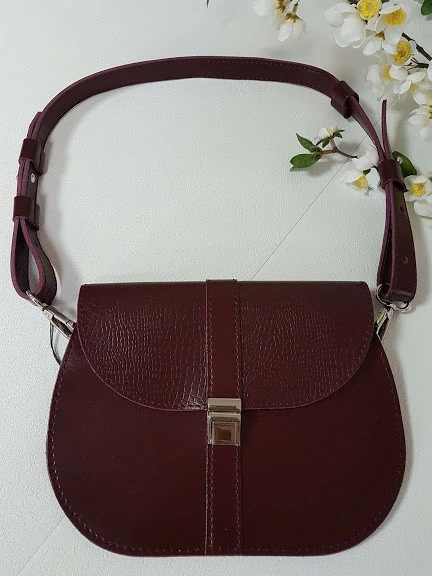 Сумка женская "ФЛОРА" натуральная кожа, бургунди с рептилией