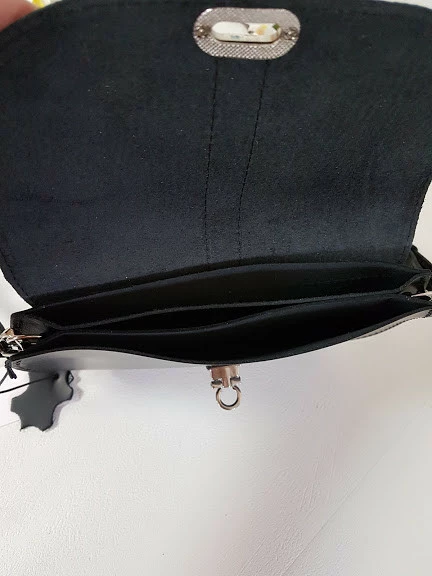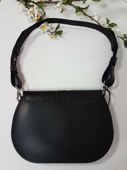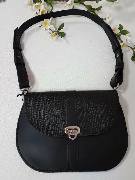 Сумка женская "ФЛОРА" натуральная кожа, черная клапан под рептилию