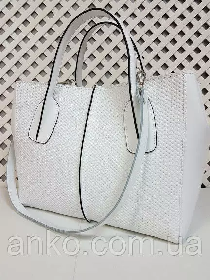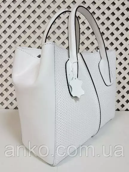 Сумка женская "ФОРТА" натуральная кожа, белая матовая с тиснением под плетенку