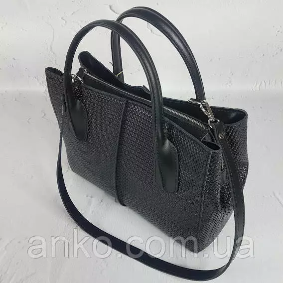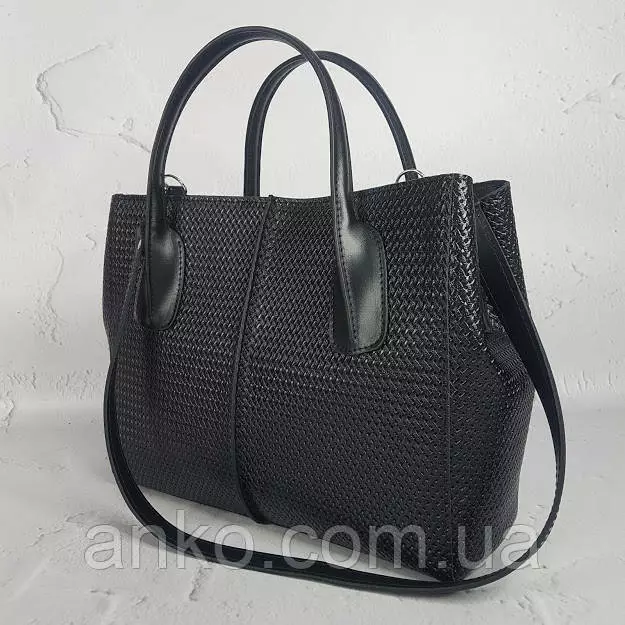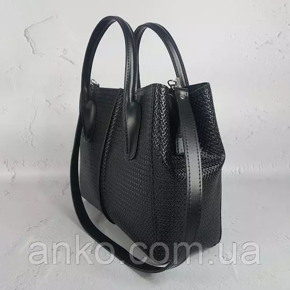 Сумка женская "ФОРТА" натуральная кожа, черная матовая под плетенку