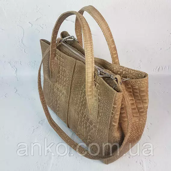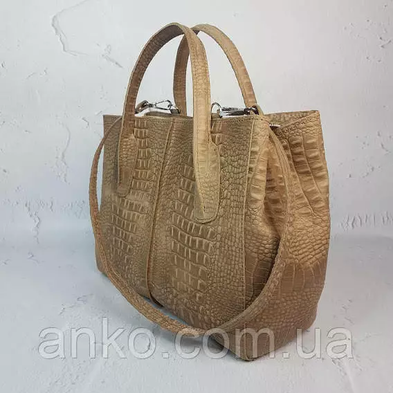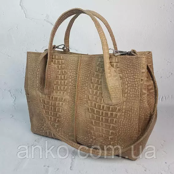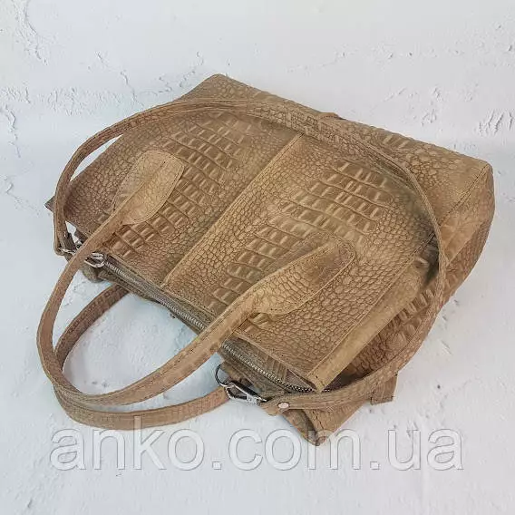 Сумка женская "ФОРТА" натуральная кожа, бежевая Crazy horse под крокодила