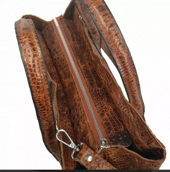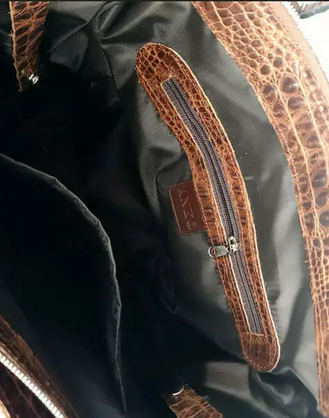 на молнии и открытый глубокий карман. Сумка закрывается на молнию.