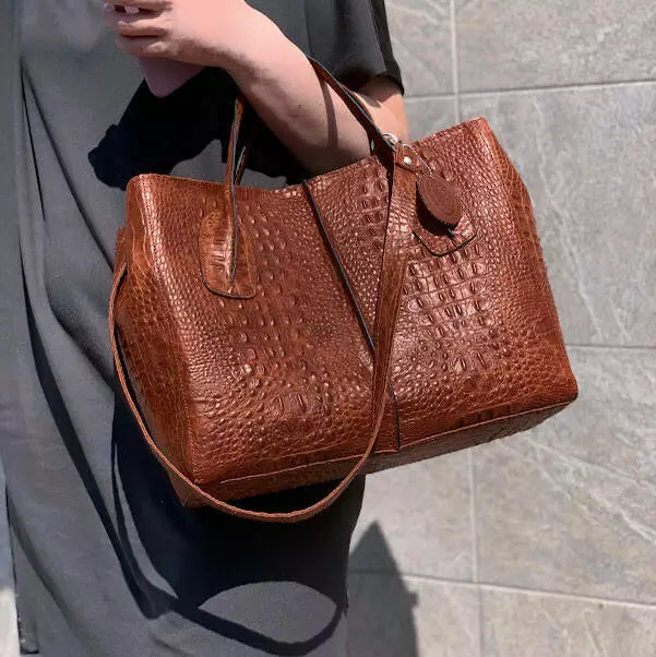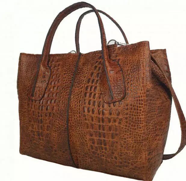 Сумка женская "ФОРТА" натуральная кожа, рыжая с тиснением под крокодила