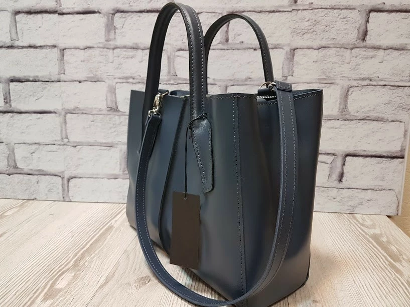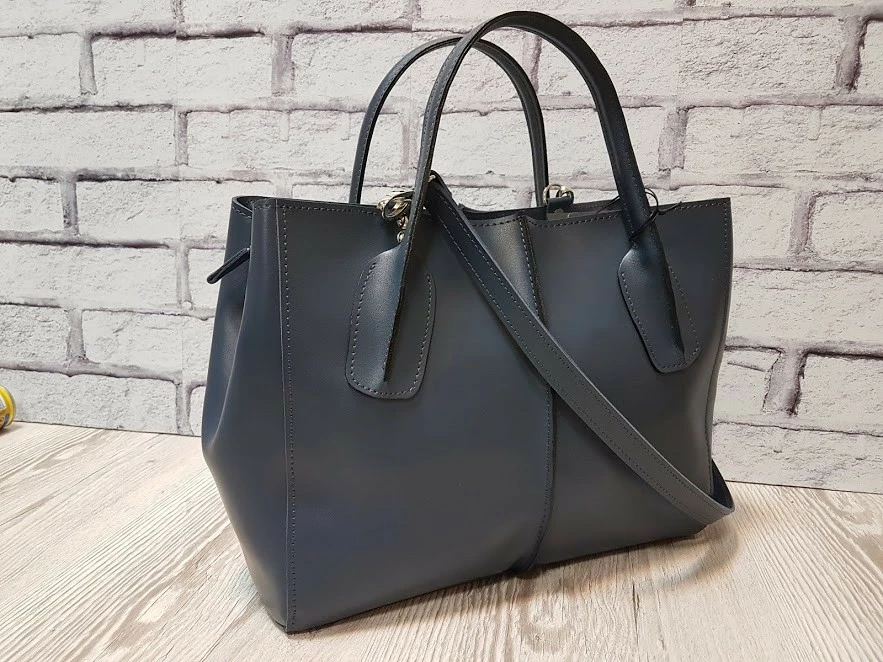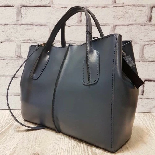 Сумка женская "ФОРТА" натуральная кожа, серо-синяя матовая
