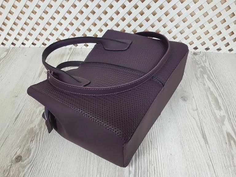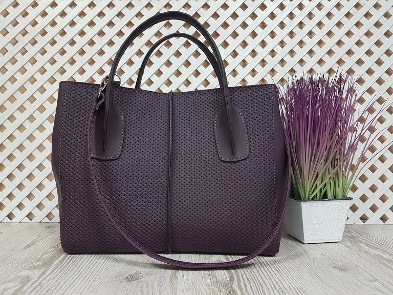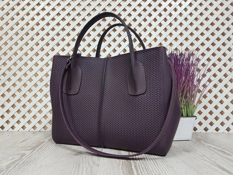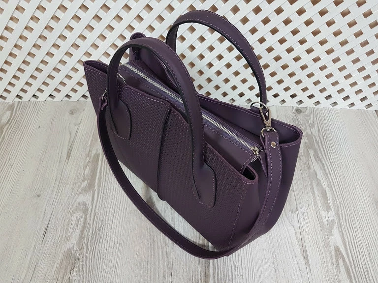Сумка женская "ФОРТА" натуральная кожа, суперматовый баклажан с тиснением под плетенку