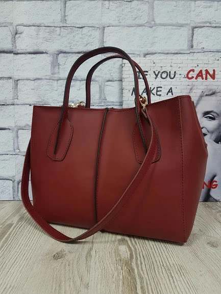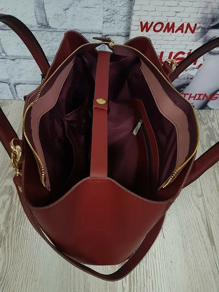 Сумка женская "ФОРТА" натуральная кожа, темный коралл матовая
