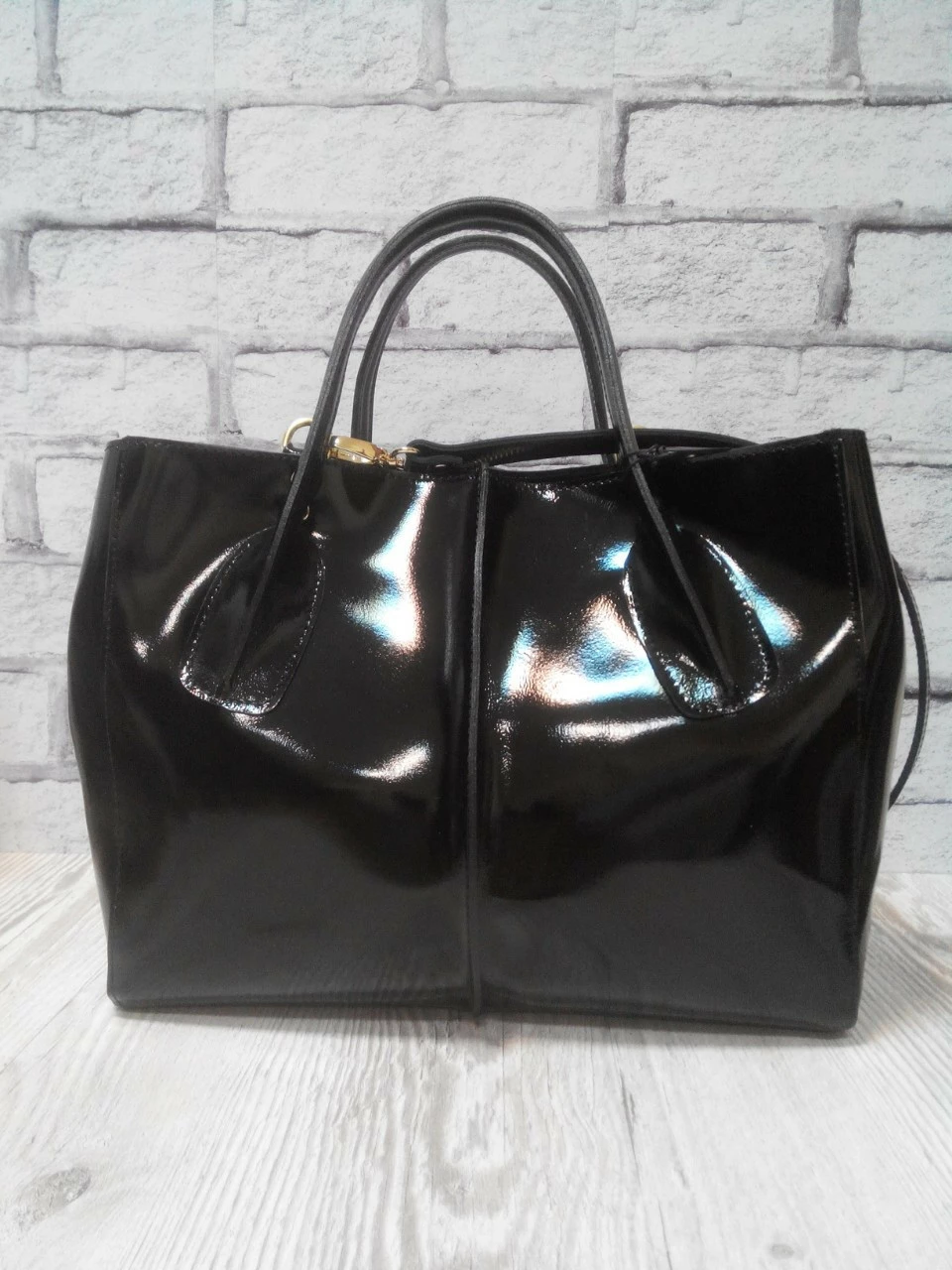 Сумка женская "ФОРТА" натуральная кожа, черный глянец