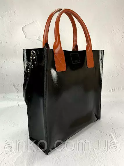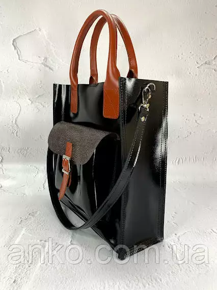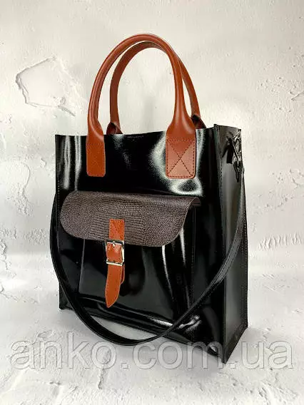 Сумка женская "ГАРДА" натуральная кожа, черная глянец комбинированная