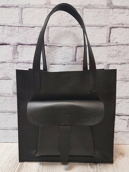 Сумка женская "ГАРДА" натуральная кожа, черная матовая с тиснением под рептилию