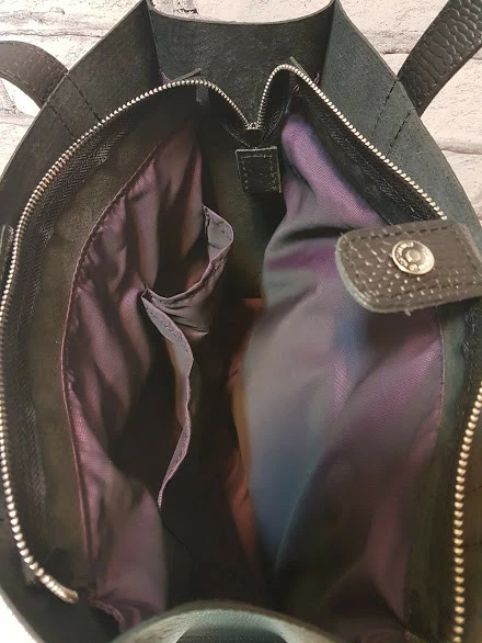 натуральной кожи. Сумка на подкладке, закрывается на молнию и на