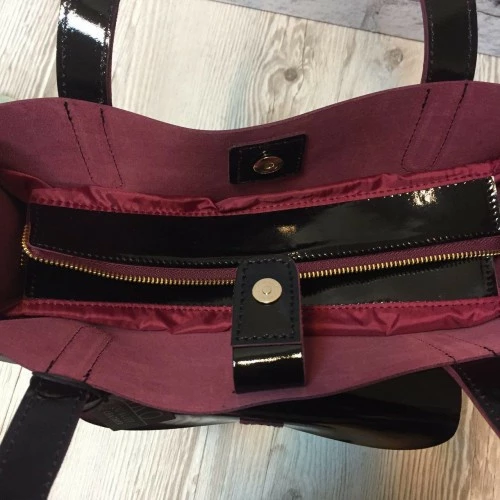 Сумка женская "ГАРДА" натуральная кожа, черная с изнанкой бургунди