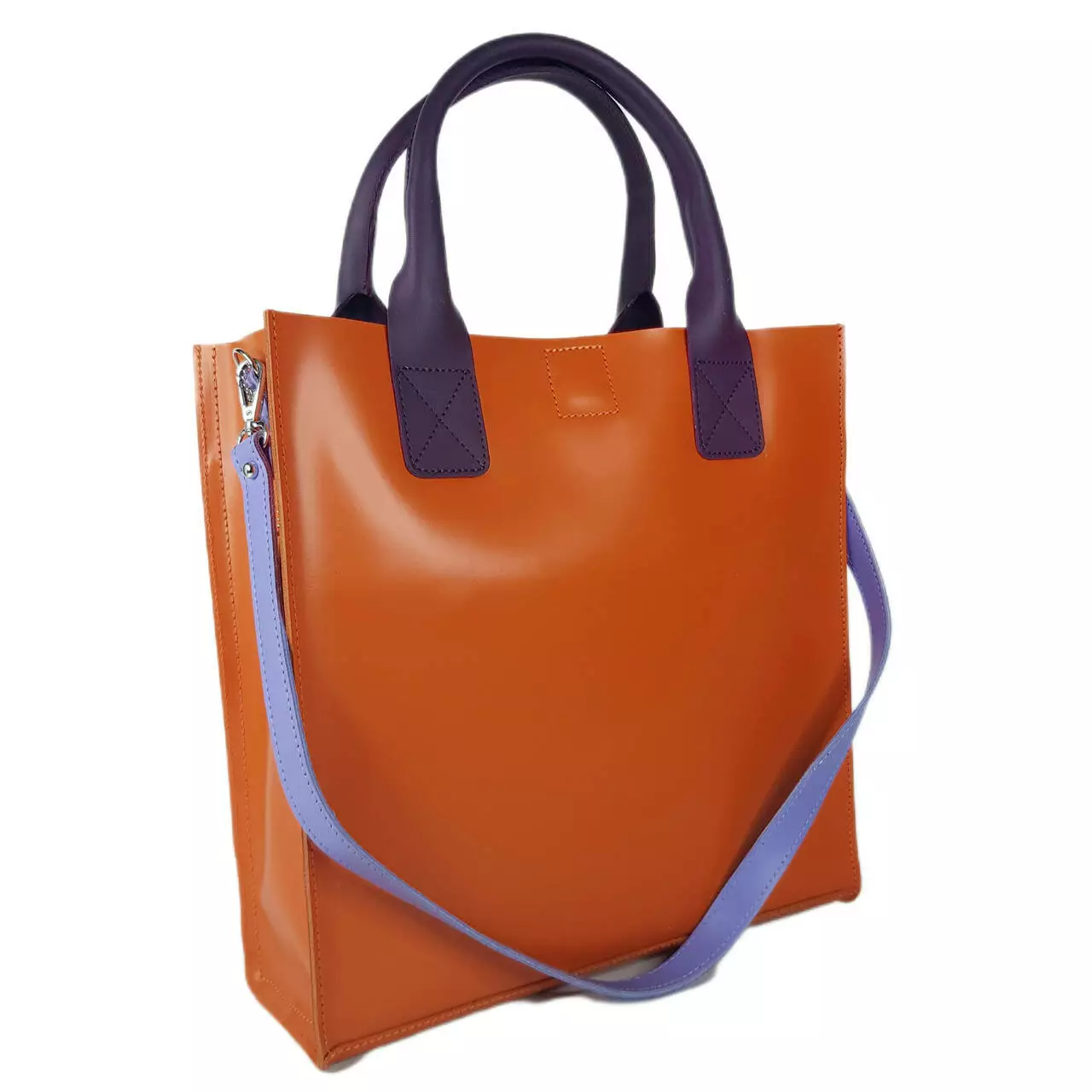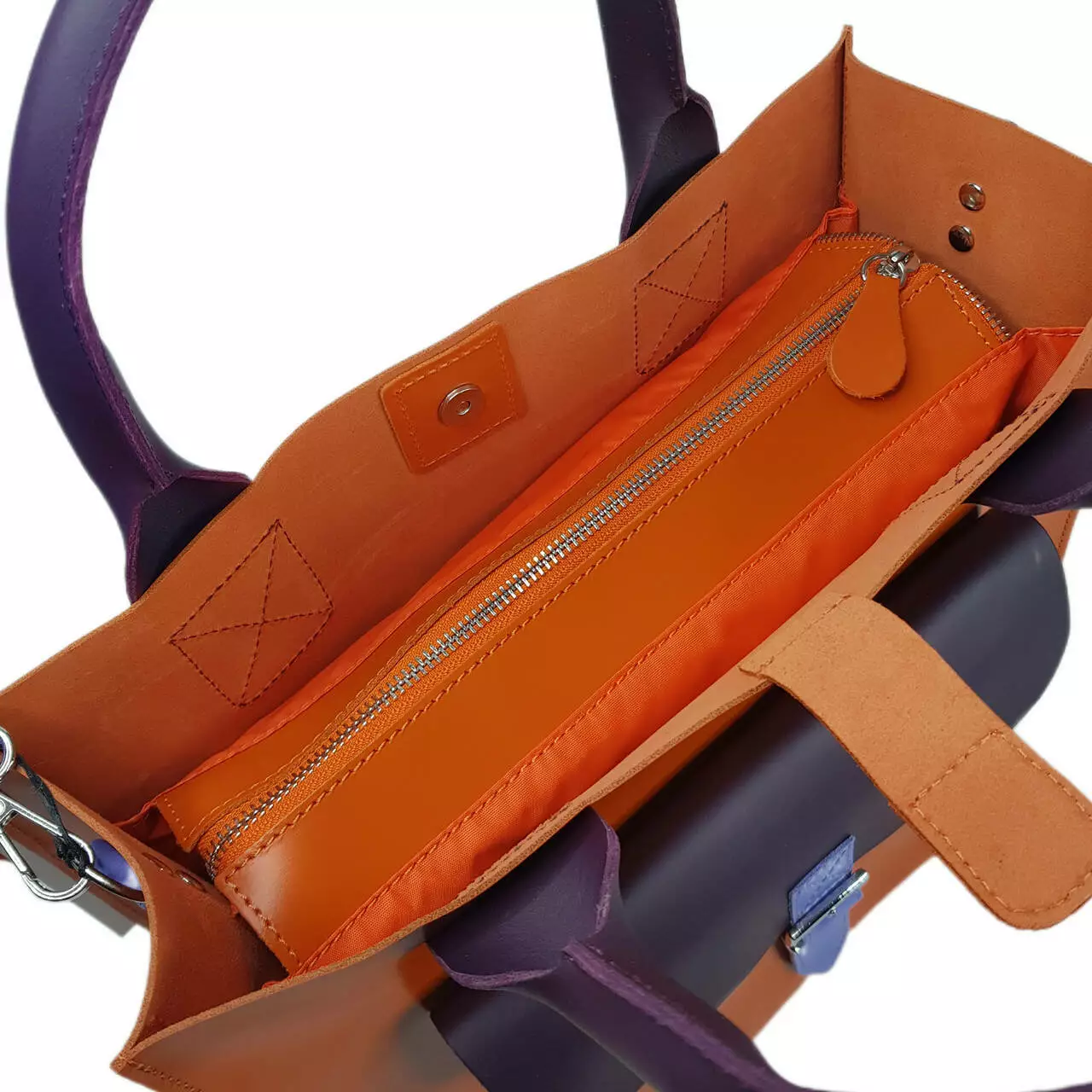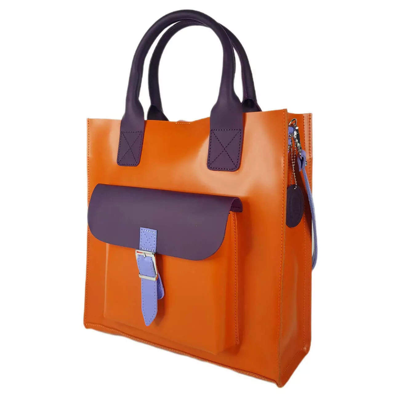 Сумка женская "ГАРДА" натуральная кожа, оранжевая/баклажан/фиалковая комбинированная