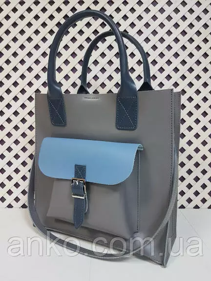 Сумка женская "ГАРДА" натуральная кожа, серая комбинированная