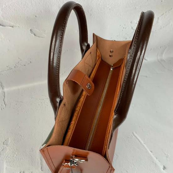 натуральной кожи. Сумка на подкладке, закрывается на молнию и на