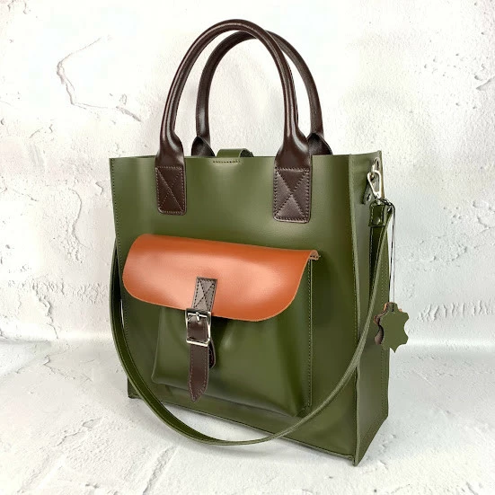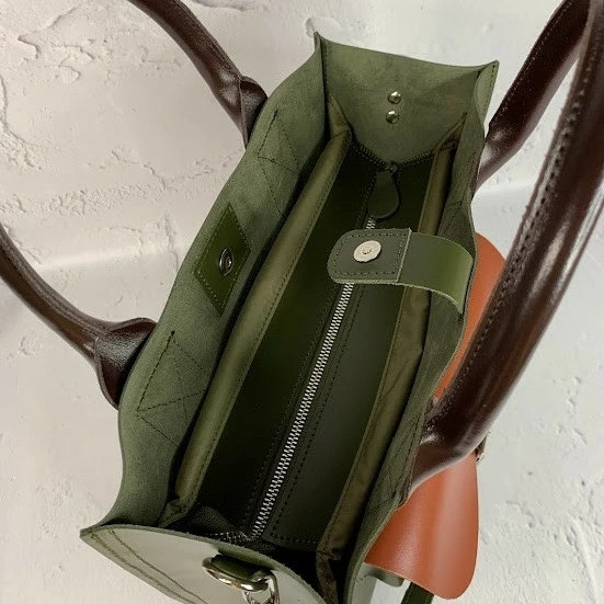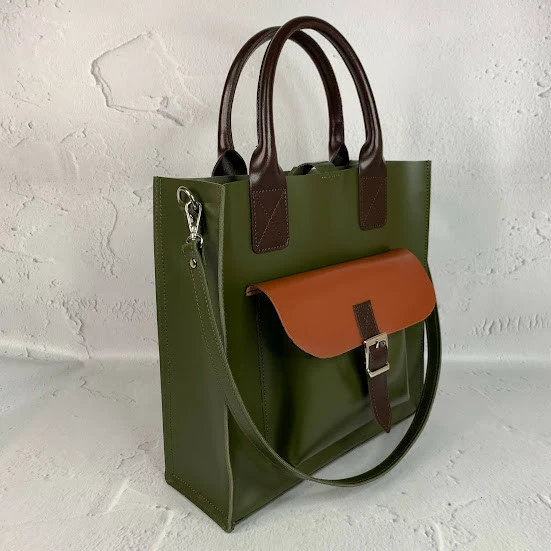 Сумка женская "ГАРДА" натуральная кожа, цвет хаки комбинированная
