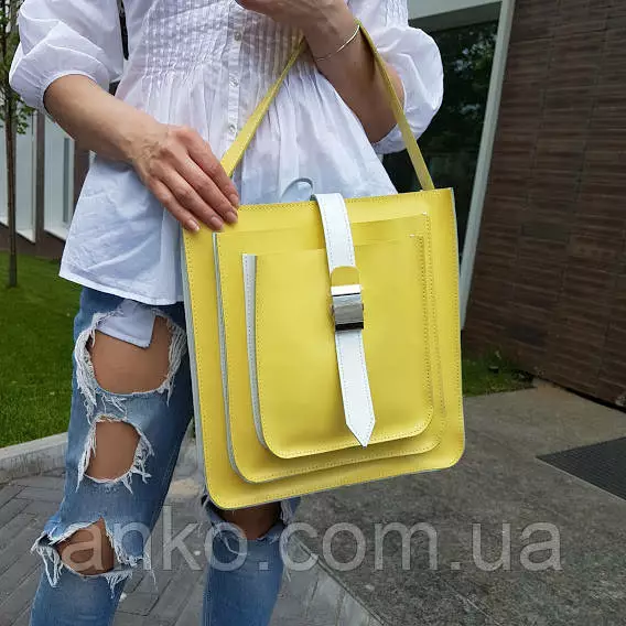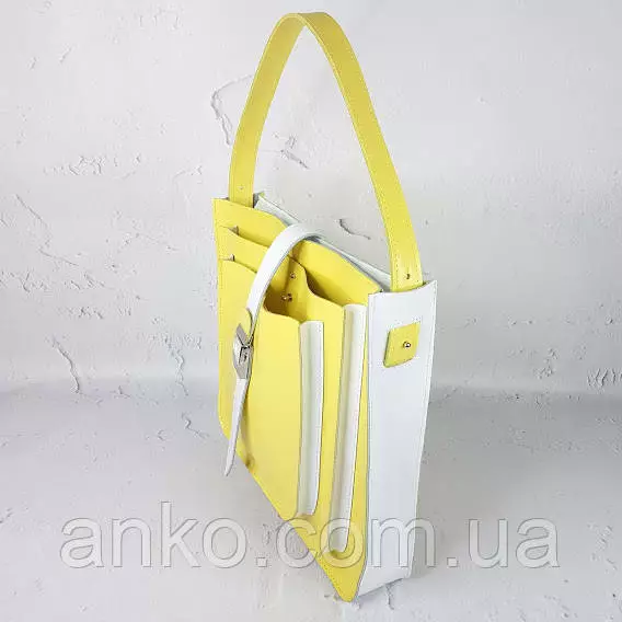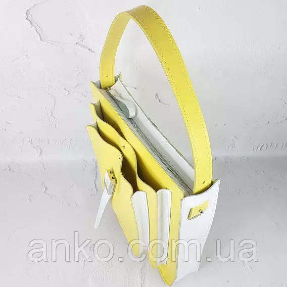 Сумка женская "Грейс" натуральная кожа, желтая / белая