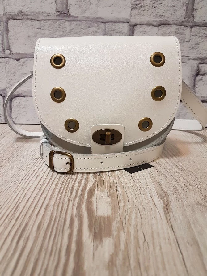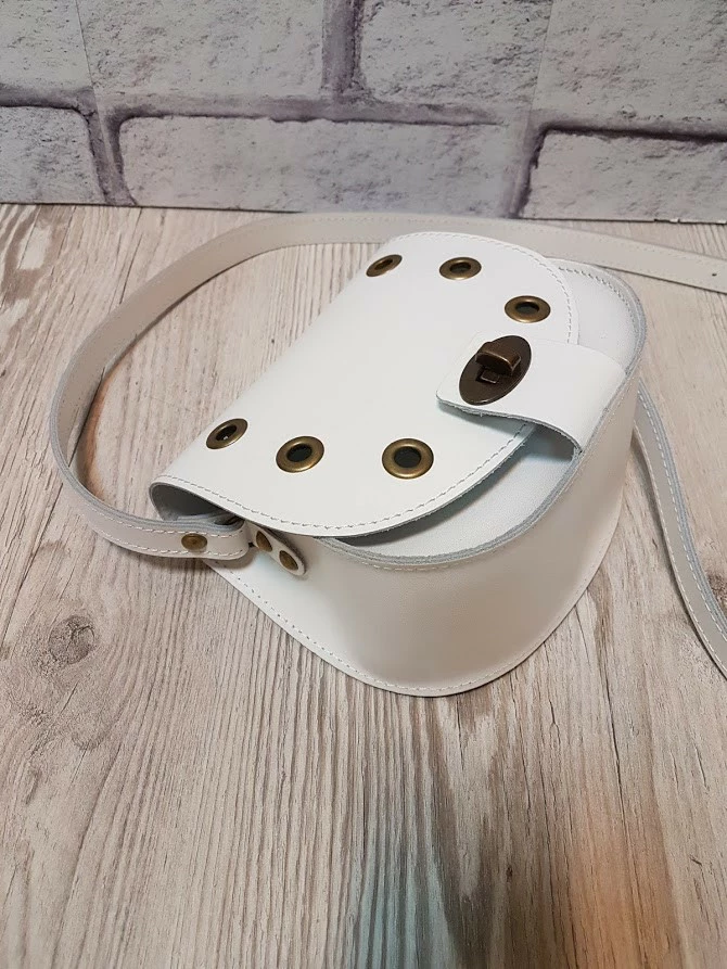 Сумка женская "Кенди" натуральная кожа, белая матовая с люверсами