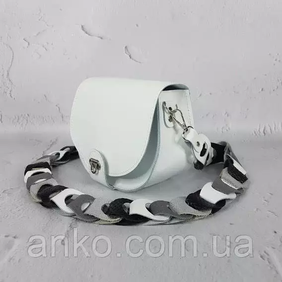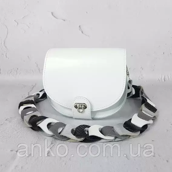 Сумка женская "Кенди" ремень-плетение натуральная кожа, белая матовая с плетеным ремнем