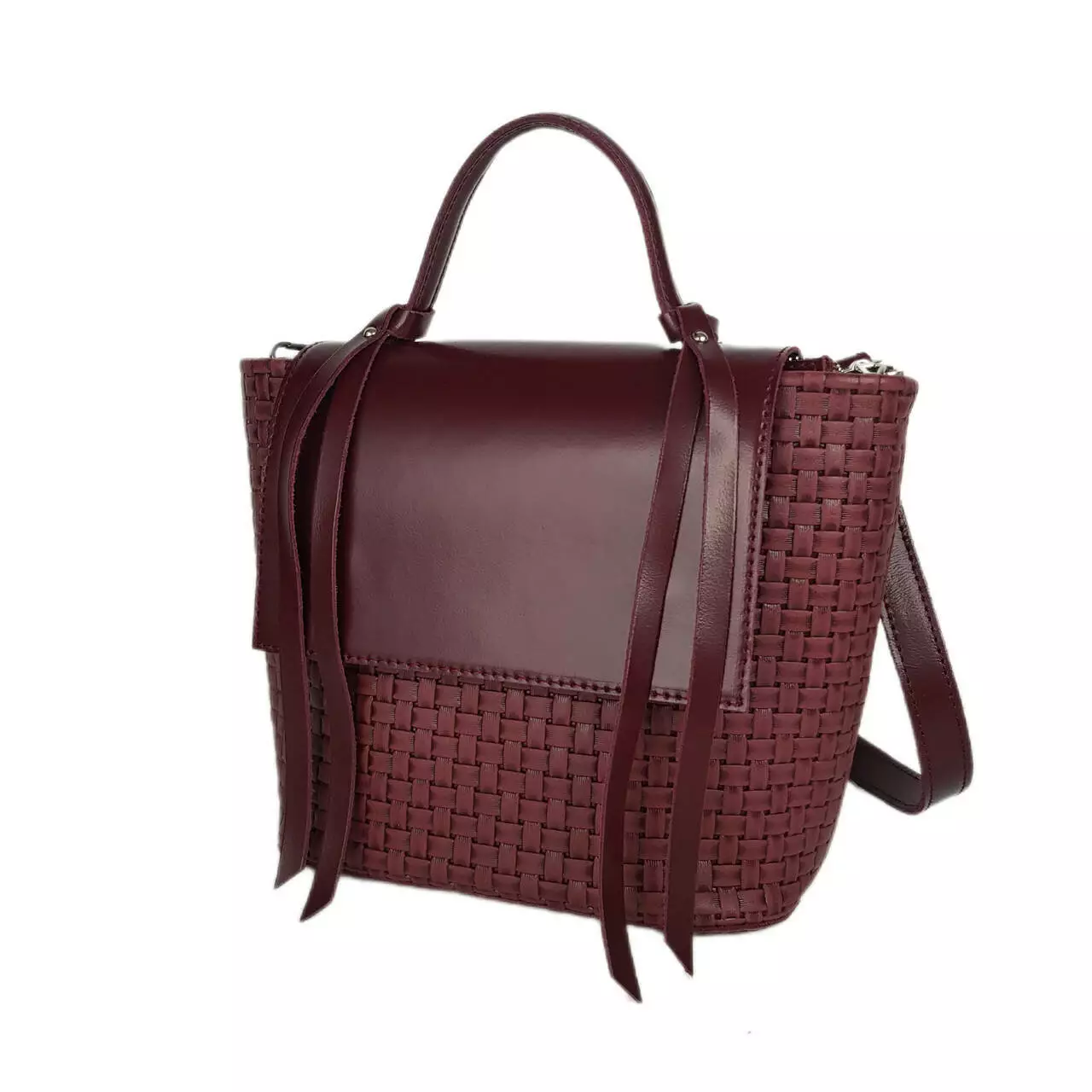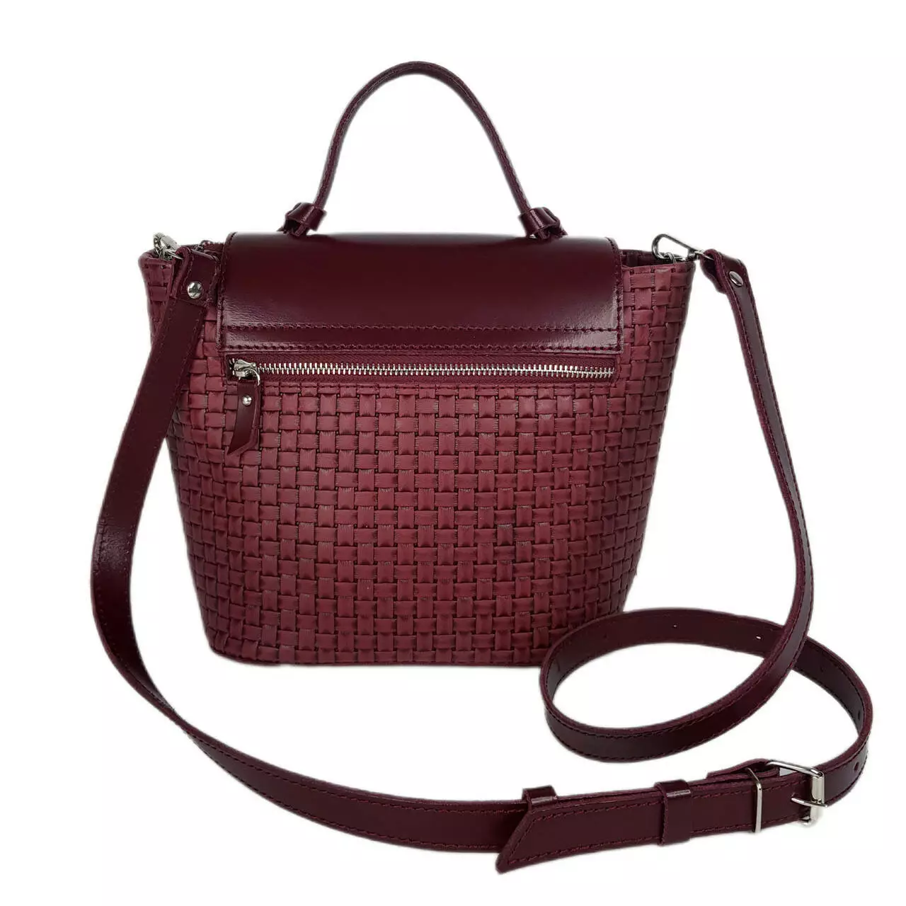 Сумка женская "Керри" натуральная кожа, бордовая с тиснением венетто