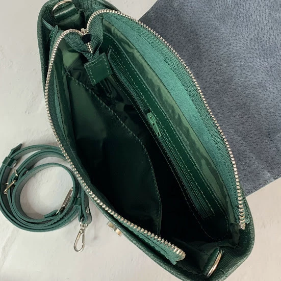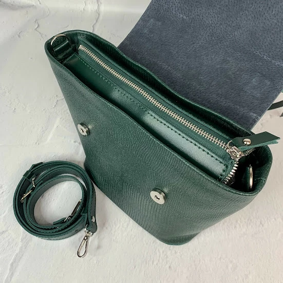 Сумка "Керри" изготовлена из натуральной кожи. Закрывается на молнию и под клапаном на два скрытых магнита, имеет одно центральное отделение, в котором есть карман на молнии и открытый карман для телефона. С тыльной стороны сумки имеется карман на молнии. Сумка на подкладке, плечевой ремень с регулировкой длины 125см, который крепится с помощью карабинов.