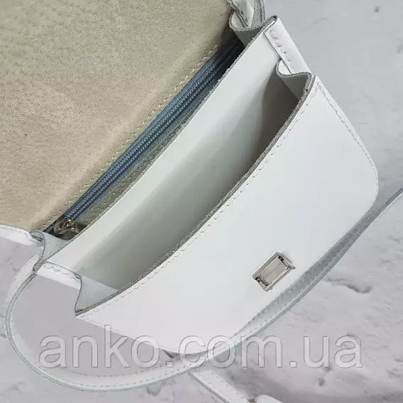 закрывается на маленький портфельный замочек. Ремешок сумки