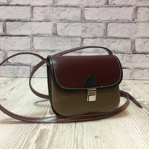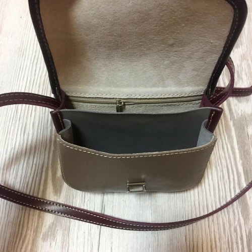 Сумка женская "Колибри" натуральная кожа, капучино/бургунди