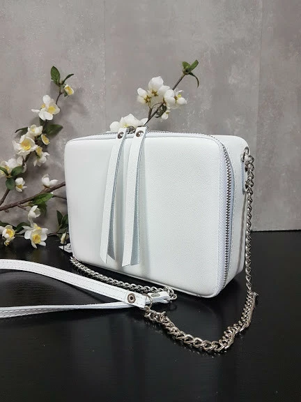 Сумка женская "КВАДРО" натуральная кожа, белая матовая