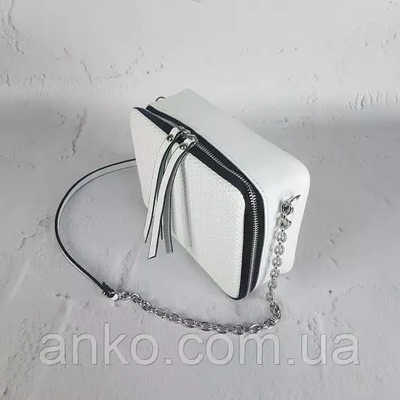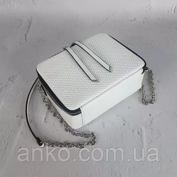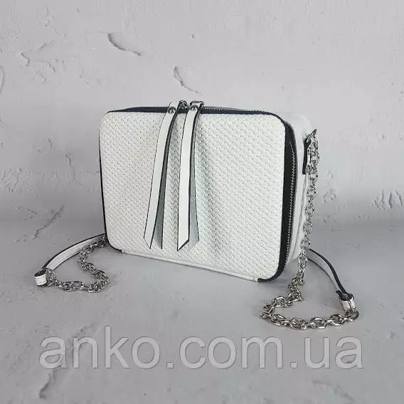 Сумка женская "КВАДРО" натуральная кожа, белая матовая плетенка