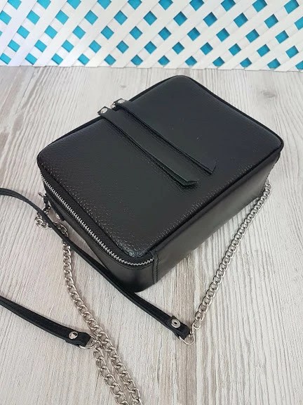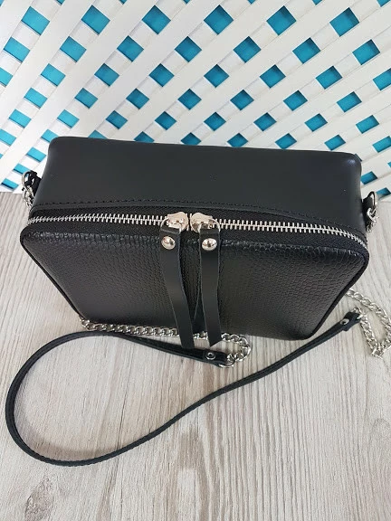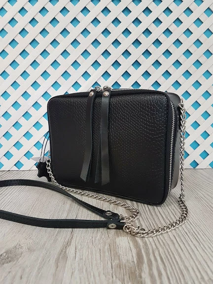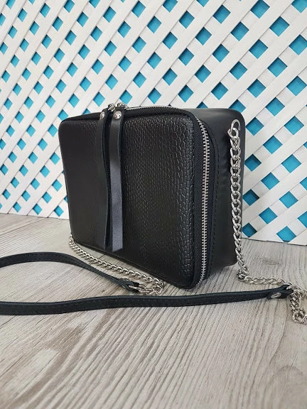 Сумка женская "КВАДРО" натуральная кожа, черная матовая под рептилию