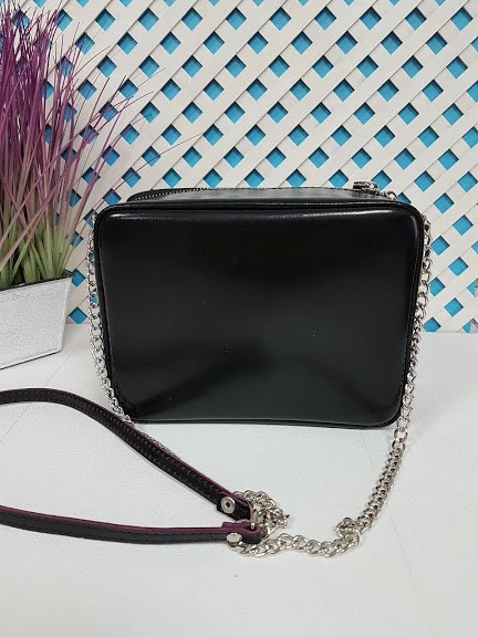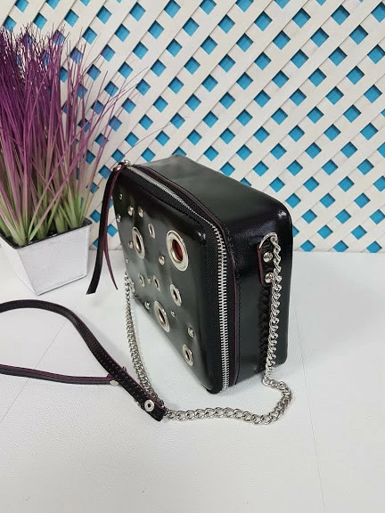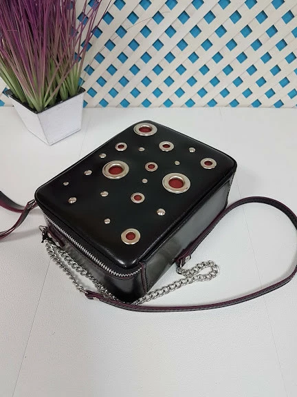 Сумка женская "КВАДРО" натуральная кожа, черная полуматовая с бургунди изнанкой с люверсами