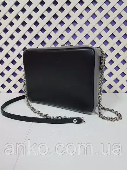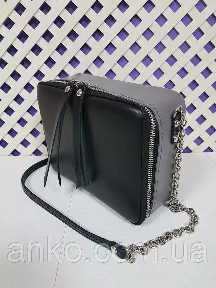 Сумка женская "КВАДРО" натуральная кожа, черная с серой комбинированная