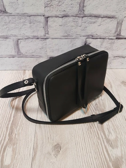 Сумка женская "КВАДРО" натуральная кожа, черная матовая кожаный ремень