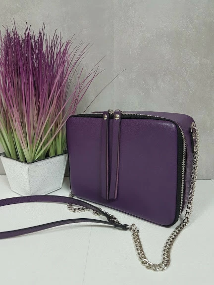 Сумка женская "КВАДРО" натуральная кожа, фиолетовая гладкая