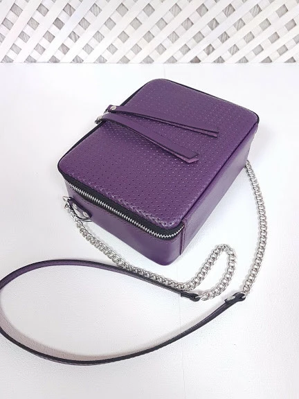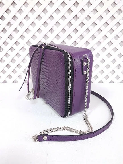 Сумка женская "КВАДРО" натуральная кожа, фиолетовая плетенка
