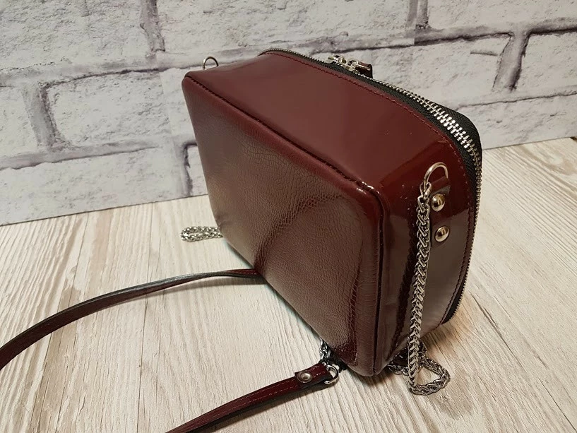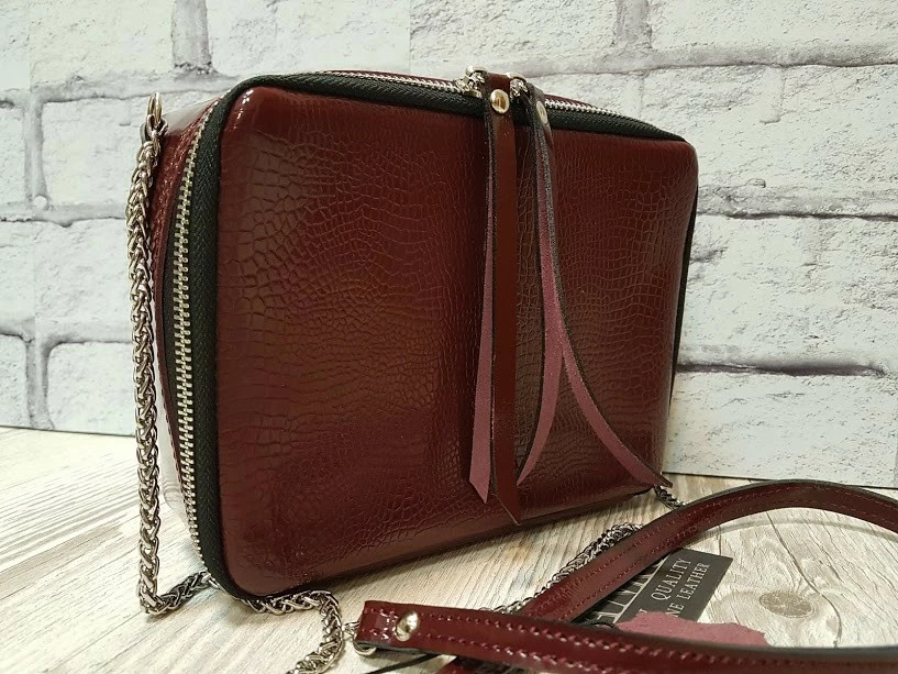 Сумка женская "КВАДРО" натуральная кожа, бургунди глянец под рептилию