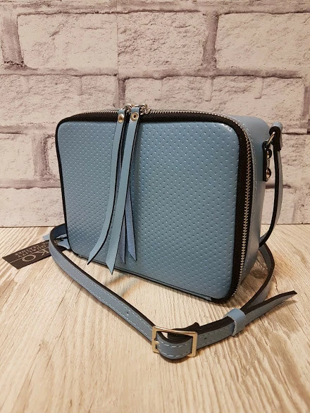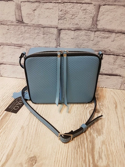 Сумка женская "КВАДРО" натуральная кожа, голубая плетенка