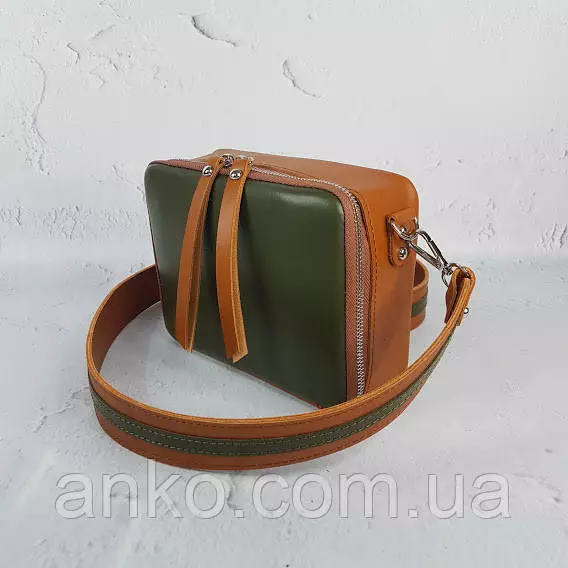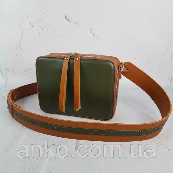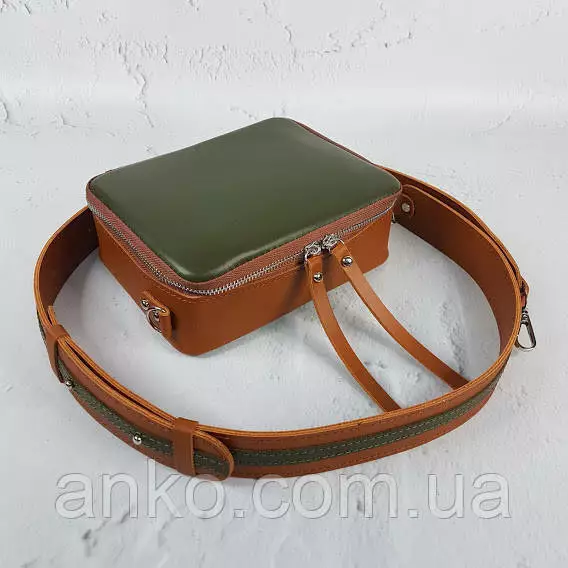 Сумка женская "КВАДРО" натуральная кожа, хаки / гончарная глина с широким ремнем