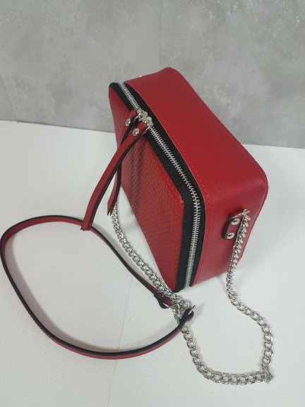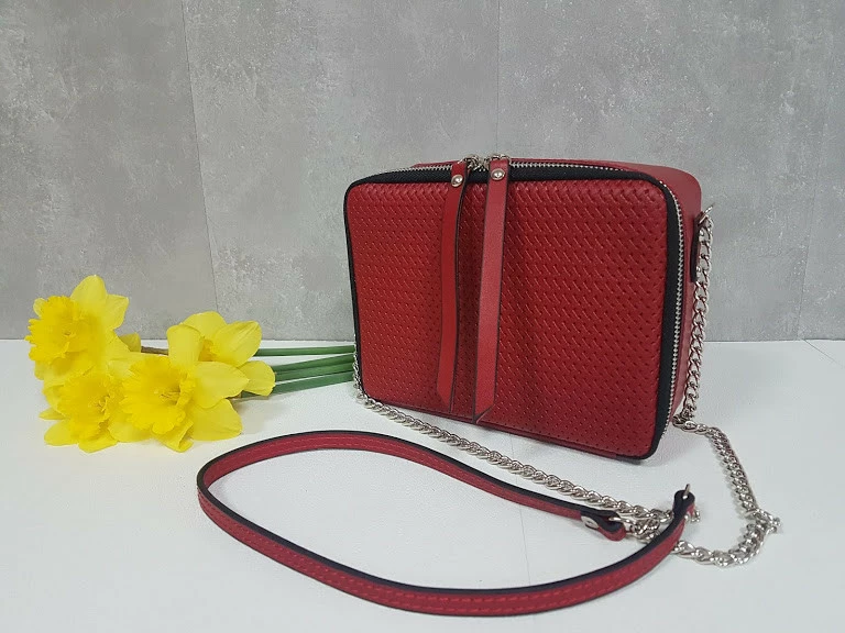Сумка женская "КВАДРО" натуральная кожа, красная плетенка матовая