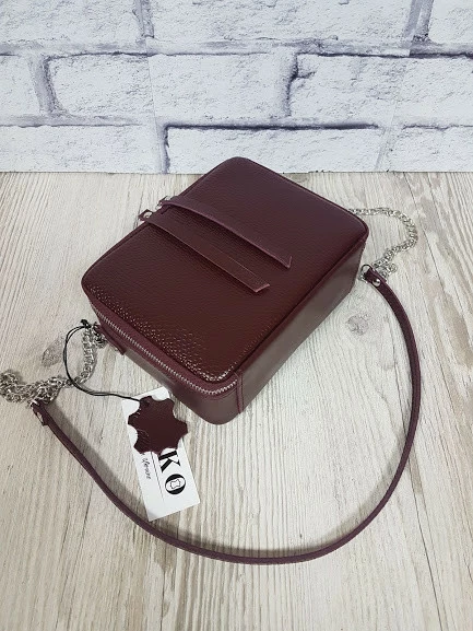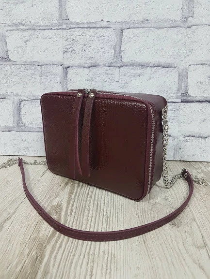 Сумка женская "КВАДРО" натуральная кожа, бургунди матовая с тиснением под рептилию