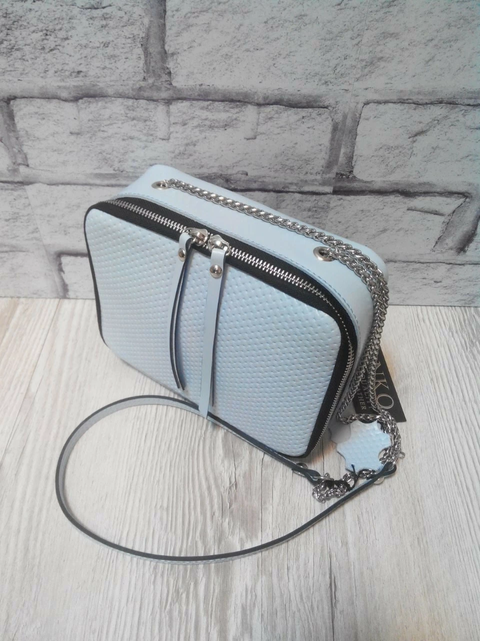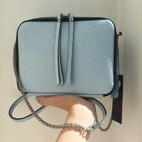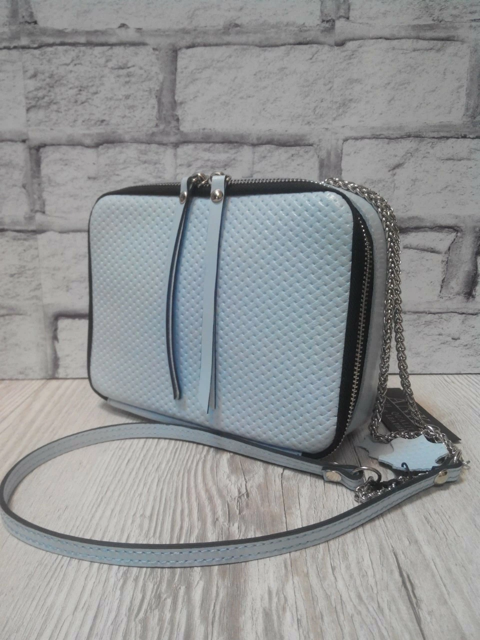 Сумка женская "КВАДРО" натуральная кожа, небесно-голубая плетенка